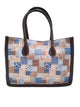 Crafted from durable patterned canvas, the bag features smooth leather handles that sit comfortably on the shoulder or in hand, adding a polished contrast to the textured body. Inside, the spacious open compartment easily fits a laptop, books, a scarf, camera, sunglasses, and small beauty items, making it ideal for commuters, students, travelers, and creators on the go.