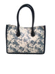 Crafted from durable patterned canvas, the bag features smooth leather handles that sit comfortably on the shoulder or in hand, adding a polished contrast to the textured body. Inside, the spacious open compartment easily fits a laptop, books, a scarf, camera, sunglasses, and small beauty items, making it ideal for commuters, students, travelers, and creators on the go.
