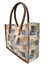 Crafted from durable patterned canvas, the bag features smooth leather handles that sit comfortably on the shoulder or in hand, adding a polished contrast to the textured body. Inside, the spacious open compartment easily fits a laptop, books, a scarf, camera, sunglasses, and small beauty items, making it ideal for commuters, students, travelers, and creators on the go.