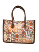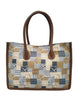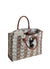 Crafted from durable patterned canvas, the bag features smooth leather handles that sit comfortably on the shoulder or in hand, adding a polished contrast to the textured body. Inside, the spacious open compartment easily fits a laptop, books, a scarf, camera, sunglasses, and small beauty items, making it ideal for commuters, students, travelers, and creators on the go.