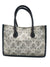 Crafted from durable patterned canvas, the bag features smooth leather handles that sit comfortably on the shoulder or in hand, adding a polished contrast to the textured body. Inside, the spacious open compartment easily fits a laptop, books, a scarf, camera, sunglasses, and small beauty items, making it ideal for commuters, students, travelers, and creators on the go.